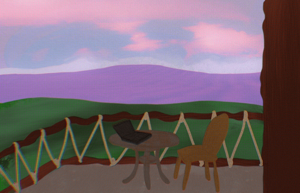 You reach for a chair to join Raph for tea. You notice a few things scattered on the table before they are hastily moved to make space for the kettle and cups.